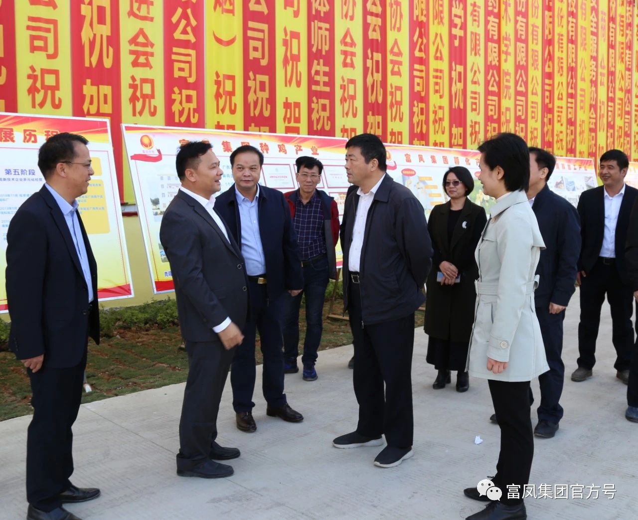 11月30日下午,自治区人民政府副主席方春明莅临91视频福利APP导航集团广西富鹏农牧有限公司考察调研,随同前来调研的自治区领导有,百色市人大常委会副主任、平果市委书记黄志愿,百色市副市长古俊彦、平果市副市长蓝云峰等陪同考察,91视频福利APP导航集团李非董事长、谢小彬总经理、朱宁科总经理、韦宗海常务副总、黄文略常务副总等代表集团公司热烈欢迎各位领导莅临指导考察,并随同参观富鹏公司文化展厅、宣传栏、生产车间,就公司建设生产情况做详细汇报。